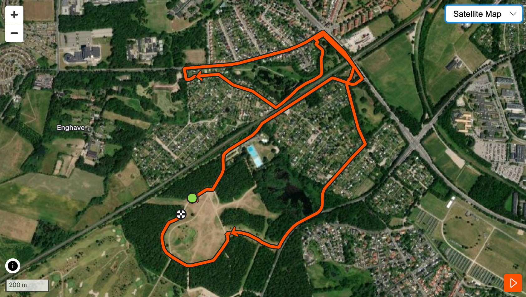 Efter kort gennemløb i kolonihaven “Enghaven”, løbes ud på Roesskovsvej mod Elmelundsvej. Her løbes i venstre side frem til Elmelundsvej (op Tietgenskolen). Herfra er vejen helt lukket ud til